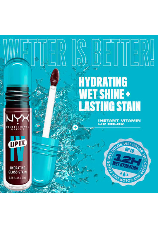 Instant Hydration. Lip I.V. staining lip gloss is designed with water-breaking technology to deliver lightweight intense pigments and a unique sensorial, lip-refreshing feel.